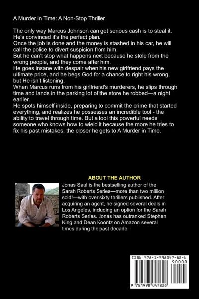 A Murder in Time: A Non-Stop Thriller The only way Marcus Johnson can get serious cash is to steal it. He's convinced it's the perfect plan. Once the job is done and the money is stashed in his car, he will call the police to divert suspicion from him. But he can't stop what happens next because he stole from the wrong people, and they come after him. He goes insane with despair when his new girlfriend pays the ultimate price, and he begs God for a chance to right his wrong, but He isn't listening. When Marcus runs from his girlfriend's murderers, he slips through time and lands in the parking lot of the store he robbed-a night earlier. He spots himself inside, preparing to commit the crime that started everything, and realizes he possesses an incredible tool - the ability to travel through time. But a tool this powerful needs someone who knows how to wield it because the more he tries to fix his past mistakes, the closer he gets to A Murder In Time.