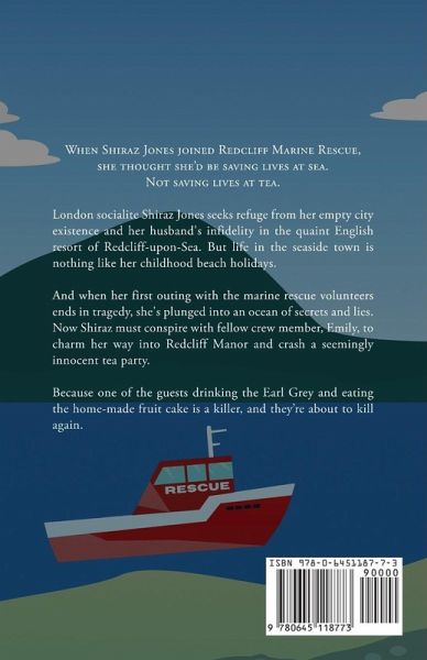 When Shiraz Jones joins Redcliff Marine Rescue to save lives at sea, she doesn't expect murder and mystery in the water. London socialite Shiraz Jones seeks refuge from her empty city existence and her husband's infidelity in the quaint English resort of Redcliff-upon-Sea. But life in the seaside town is nothing like her childhood beach holidays. And when her first outing with the marine rescue volunteers ends in tragedy, she's plunged into an ocean of secrets and lies. Now Shiraz must conspire with fellow crew member, Emily, to charm her way into Redcliff Manor and crash a seemingly innocent tea party. Because one of the guests drinking the Earl Grey and eating the home-made fruit cake is a killer, and they're about to kill again.