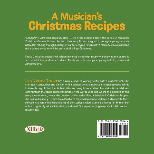 A Musician's Christmas Recipes, Sung Twice is the second book in the series, A Musician's Christmas Recipes. It is a collection of nursery fiction designed to engage a young person's interest in reading through a design of nursery rhyme fiction with a recipe to develop a scene and a poetry verse to tell the story of all things Christmas. These Christmas recipes will lighten anyone's mood with festivity and joy as the poetry is catchy, addictive, and easy to share. This book is for everyone, young and old, to enjoy at Christmastime.