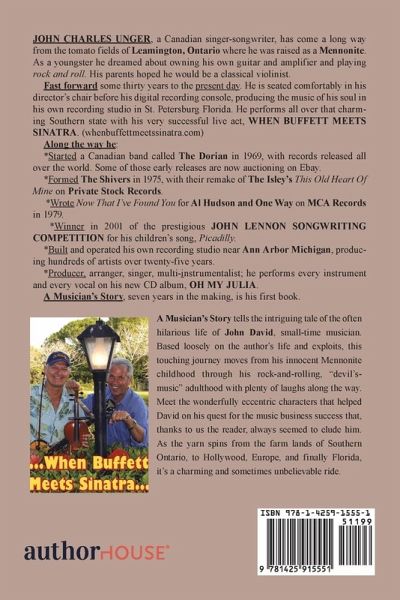 A Musician's Story tells the intriguing tale of the often hilarious life of John David, small-time musician. Based loosely on the author's life and exploits, this touching journey moves from his innocent Mennonite childhood through his rock-and-rolling, "devil's-music" adulthood with plenty of laughs along the way. Meet the wonderfully eccentric characters that helped David on his quest for the music business success that, thanks to us the reader,?always seemed to elude him. As the yarn spins from the farm lands of Southern Ontario, to Hollywood, Europe, and finally Florida, it's a charming and sometimes unbelievable?ride.