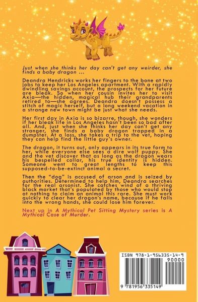 Just when she thinks her day can't get any weirder, she finds a baby dragon ... Deandra Hendricks works her fingers to the bone at two jobs to keep her Los Angeles apartment. With a rapidly dwindling savings account, the prospects for her future are bleak. So when her cousin invites her to visit Axia-the hidden, magical hub their grandparents retired to-she agrees. Deandra doesn't possess a stitch of magic herself, but a long weekend vacation in a strange new town might be just what she needs. Her first day in Axia is so bizarre, though, she wonders if her bleak life in Los Angeles hasn't been so bad after all. And, just when she thinks her day can't get any stranger, she finds a baby dragon trapped in a dumpster. At a loss, she takes a trip to the vet, hoping they can help find the little guy's owner. The dragon, it turns out, only appears in its true form to her, while everyone else sees a dire wolf puppy. She and the vet discover that as long as the dragon wears his bespelled collar, his true identity is hidden. Someone went to great lengths to keep this supposed-to-be-extinct animal a secret. Then the "dog" is accused of arson and is seized by authorities. Determined to help him, Deandra searches for the real arsonist. She catches wind of a thriving black market that's populated by those who would stop at nothing to claim an animal this rare. She must work quickly to clear her dragon's name, because if he falls into the wrong hands, she could lose him forever.