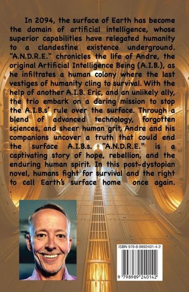 In 2094, the surface of Earth has become the domain of artificial intelligence, whose superior capabilities have relegated humanity to a clandestine existence underground. "A.N.D.R.E." chronicles the life of Andre, the original Artificial Intelligence Being (A.I.B.), as he infiltrates a human colony where the last vestiges of humanity cling to survival. With the help of another A.I.B., Eric, and an unlikely ally, the trio embark on a daring mission to stop the A.I.B.s' rule over the surface. Through a blend of advanced technology, forgotten sciences, and sheer human grit, Andre and his companions uncover a truth that could end the surface A.I.B.s. "A.N.D.R.E." is a captivating story of hope, rebellion, and the enduring human spirit. In this post-dystopian novel, humans fight for survival and the right to call Earth's surface home once again.