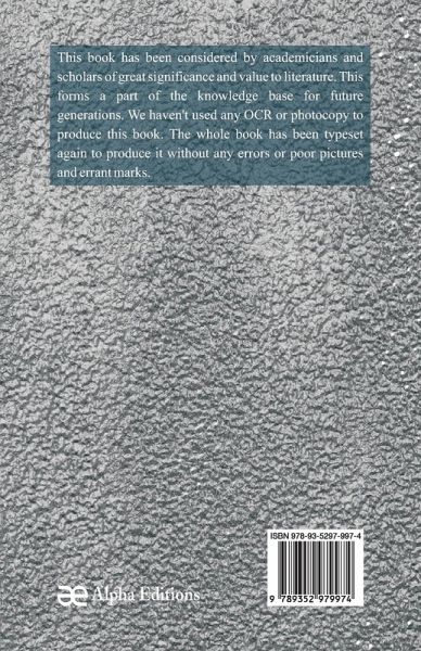 This book has been considered by academicians and scholars of great significance and value to literature. This forms a part of the knowledge base for future generations. We havent used any OCR or photocopy to produce this book. The whole book has been typeset again to produce it without any errors or poor pictures and errant marks.