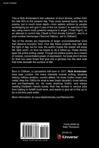 This is Nick Armbrister's first collection of short stories, written from the late 90's to the present day. They cover several topics, like his poems, but in much more depth-from satanic actions by people worshipping an evil god ('Loss of the Ice Queen') to warriors of the sky using man's most powerful weapons in anger ('Final Flight'), to an attempt to control fate ('Spell to Find Amelia Earhart'), and to a post-nuclear townscape ('Second History', set in Oldham). Two of the stories are fragments of larger uncompleted/lost work that deserve inclusion here. One day these projects may well see the light of day, but for now, the author hopes the reader will enjoy his 'dark work'-in time he hopes to do a follow-up. These stories span his entire writing career. Though he prefers poetry as a means of incisive, concentrated power of expression, he loves short stories for their fun; even those that give one a glimpse into the dark side that lurks beneath the surface of life!