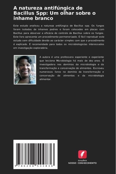 Este estudo analisou a natureza antifúngica de Bacillus spp. Os fungos foram isolados de inhames podres e foram colocados em placas com Bacillus para observar a eficácia do controlo de Bacillus sobre os fungos. Este livro apresenta um procedimento pormenorizado. É fácil reproduzir este estudo sem dificuldade devido ao carácter simples com que o procedimento é explicado. É recomendado para todos os microbiologistas interessados em investigação exploratória.