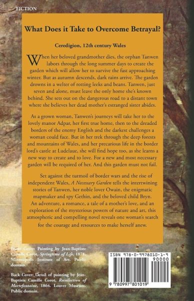What does it take to overcome betrayal? Ceredigion, 12th Century Wales: When her beloved grandmother dies, the orphan Tanwen labors through the long summer days to create the garden which will allow her to survive the fast approaching winter. But as autumn descends, dark rains arrive. The garden drowns in a welter of rotting leeks and beans. Tanwen, just seven and alone, must leave the only home she's known behind. She sets out on the dangerous road to a distant town where she believes her dead mother's estranged sister abides. The determined child survives, but she is always an outsider in her aunt's home and town. As a grown woman, she makes an unusual, even rash, choice. The consequences will be beyond her imagining. Tanwen's journeys will take her to the lovely manor Adpar, her first true home, then to the dreaded borders of the enemy English and to the darkest challenges a woman could face. But in her trek through the deep forests and mountains of Wales, and her precarious new life in the border lord's castle at Ludelaue, she will find hope too, as she learns a new way to create and to love. For a new and most necessary garden will be required of her. And this garden must not fail. Set against the turmoil of border wars and the rise of an independent Wales, A Necessary Garden tells the intertwining stories of Tanwen, her noble lover Owain, the enigmatic mapmaker and spy Gethin, and the beloved child Bryn. An adventure, a romance, a tale of a mother's love, and an exploration of the mysterious powers of nature and art, this atmospheric and compelling novel reveals one woman's search for a path beyond betrayal. What does it take to find the courage and resources to make oneself anew?