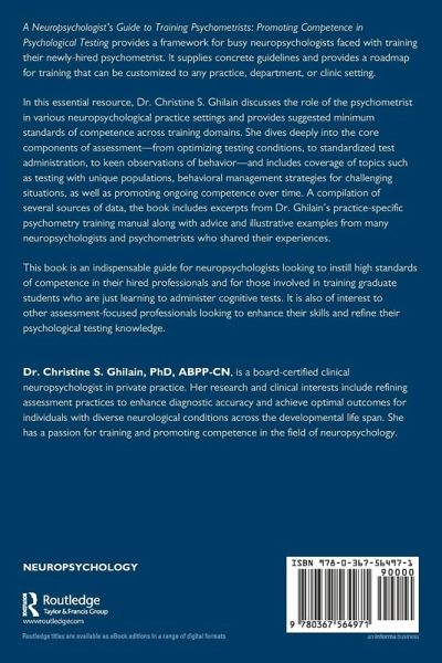 A Neuropsychologist's Guide to Training Psychometrists: Promoting Competence in Psychological Testing provides a framework for busy neuropsychologists faced with training their newly-hired psychometrist. It supplies concrete guidelines and provides a roadmap for training that can be customized to any practice, department, or clinic setting.