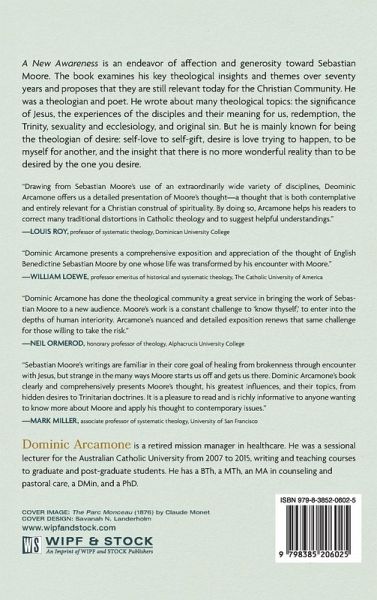 A New Awareness is an endeavor of affection and generosity toward Sebastian Moore. The book examines his key theological insights and themes over seventy years and proposes that they are still relevant today for the Christian Community. He was a theologian and poet. He wrote about many theological topics: the significance of Jesus, the experiences of the disciples and their meaning for us, redemption, the Trinity, sexuality and ecclesiology, and original sin. But he is mainly known for being the theologian of desire: self-love to self-gift, desire is love trying to happen, to be myself for another, and the insight that there is no more wonderful reality than to be desired by the one you desire.