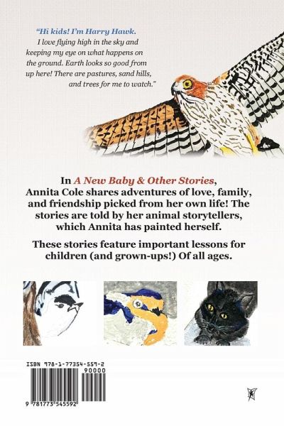 In A New Baby & Other Stories, Annita Cole shares adventures of love, family, and friendship picked from her own life! The stories are told by her animal storytellers, which Annita has painted herself. These stories feature important lessons for children (and grown-ups!) of all ages. "My hope for the children who read these stories is that they will learn something about how to love others from each one. My inspiration for writing is the explanation of what love is and isn't in 1 Corinthians 13:4-8. I believe that the love of God and how it is applied to our own hearts and those around us helps us to live a more peaceful life." -Annita Cole
