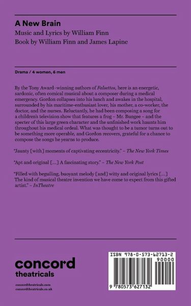 By the Tony Award-winning authors of Falsettos, here is an energetic, sardonic, often comical musical about a composer during a medical emergency. Gordon collapses into his lunch and awakes in the hospital, surrounded by his maritime-enthusiast lover, his mother, a co-worker, the doctor, and the nurses. Reluctantly, he had been composing a song for a children's television show that features a frog - Mr. Bungee - and the specter of this large green character and