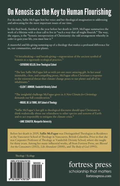 For decades, Sallie McFague lent her voice and her theological imagination to addressing and advocating for the most important issues of our time. In doing so, she influenced an entire generation and empowered countless people in their efforts to put religion in the service of meeting human needs in difficult times. In this final book, finished in the year before her death in 2019, McFague summarizes the work of a lifetime with a clear call to live in "such a way that all might flourish." The way, she argues, is the "kenotic interpretation of Christianity: the odd arrangement whereby in order to gain your life, you must lose it. The way of the cross is total self-emptying so that one can receive life, real life, and then pass this life on." A masterful and life-giving summing-up of a theology that makes a profound difference for us, our communities, and our planet.