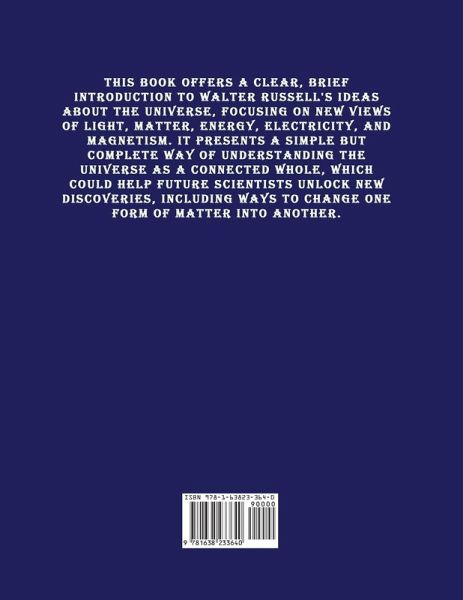 This book offers a clear, brief introduction to Walter Russell's ideas about the universe, focusing on new views of light, matter, energy, electricity, and magnetism. It presents a simple but complete way of understanding the universe as a connected whole, which could help future scientists unlock new discoveries, including ways to change one form of matter into another.