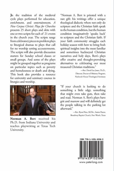 "Norman A. Bert is priested with a rare gift: his writings offer a unique theological dialectic where not only do scripture and the Christian faith speak to the human condition, but the human condition imaginatively 'speaks back' to scripture and the Christian faith. If your faith community struggles each holiday season with how to bring fresh spiritual insights into the most familiar and sometimes hackneyed Christian narratives and holy days, Bert's plays offer creative and thought-provoking alternatives to celebrating our most treasured Christian traditions." -Rev. David Lee Jones, Th.D., Director, Doctor of Ministry Program, Nashotah House Theological Seminary