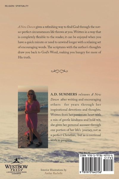 A New Dawn gives a refreshing way to find God through the not-so-perfect circumstances life throws at you. Written in a way that is completely flexible to the reader, it can be enjoyed when you have a quick minute or need to unwind longer with a relaxing set of encouraging words. The scriptures with the author's thoughts draw you back to God's Word, making you hungry for more of His truth.