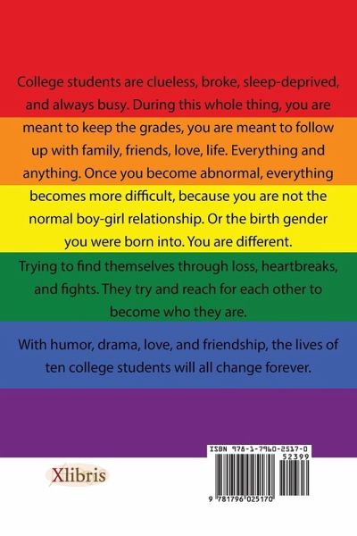College students are clueless, broke, sleep-deprived, and always busy. During this whole thing, you are meant to keep the grades and to follow up with family, friends, love, and life-everything and anything. Once you become abnormal, everything becomes more difficult because you are not the normal boy-girl relationship or the birth gender you were born into. You are different. Trying to find themselves through loss, heartbreaks, and fights, they try and reach for one another to become who they are. With humor, drama, love, and friendship, the lives of ten college students will all change forever.…mehr