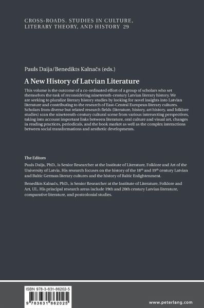 This volume is the outcome of a co-ordinated effort of a group of scholars who set themselves the task of reconsidering nineteenth-century Latvian literary history. We are seeking to pluralize literary history studies by looking for novel insights into Latvian literature and contributing to the research of East-Central European literary cultures. Scholars from diverse but related research fields (literature, history, art history, and folklore studies) scan the nineteenth-century cultural scene from various intersecting perspectives, taking into account important links between literature, oral culture and visual art, changes in reading practices, periodicals, and the book market as well as the complex interactions between social transformations and aesthetic developments.