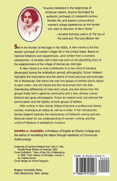 Set in the frontier of Michigan int he 1830s, A New Home is the first realistic portrayal of western village life in the United States. Based on Caroline Kirkland's own experiences - and written from a woman's perspective - it narrates with a keen eye and wit the absorbing story of the establishment of the village of Montacute, Michigan.