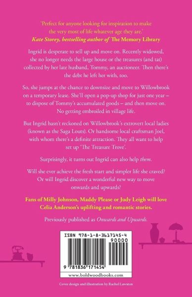 The BRAND NEW feel-good read from TOP TEN bestselling author Celia Anderson Ingrid is desperate to sell up and move on. Recently widowed, she no longer needs the large house or the treasures (and tat) collected by her late husband, Tommy, an auctioneer. Then there's the debt he left her with, too. So, she jumps at the chance to downsize and move to Willowbrook on a temporary lease. She'll open a pop-up shop for just one year - to dispose of Tommy's accumulated goods - and then move on. No getting embroiled in village life. But Ingrid hasn't reckoned on Willowbrook's extrovert local ladies (known as the Saga Louts). Or handsome local craftsman Joel, with whom there's a definite attraction. They all want to help set up 'The Treasure Trove'. Surprisingly, it turns out Ingrid can also help them. Will she ever achieve the fresh start and simpler life she craved? Or will Ingrid discover a wonderful new way to move onwards and upwards? Fans of Milly Johnson, Maddy Please or Judy Leigh will love Celia Anderson's uplifting and romantic stories. Previously published as Onwards and Upwards. Praise for Celia Anderson: 'Perfect for anyone looking for inspiration to make the very most of life whatever age they are.' Kate Storey 'Celia Anderson's characters leap from the page in her beautifully observed stories.' Sue Moorcroft 'Warm, romantic and different, in the very best way' Katie Fforde 'Celia tells a story with warmth and heart - you'll be rooting for her wonderfully vivid characters, and want them to be your friends too!' Fiona Gibson 'Funny, sad, relatable and superbly crafted, this is a real hug in a book .' Judy Leigh 'Celia's stories are always a delightful read.' Bella Osborne 'I absolutely adored it!' Ruth Hogan 'Certain to make you laugh and cry' Jenni Keer 'Wonderful characters make this a great read' Good Housekeeping 'Unforgettable' Woman's Weekly 'A gorgeous, uplifting, poignant tale of love, friendship and second chances . . . A treat of a novel' Annie Lyons