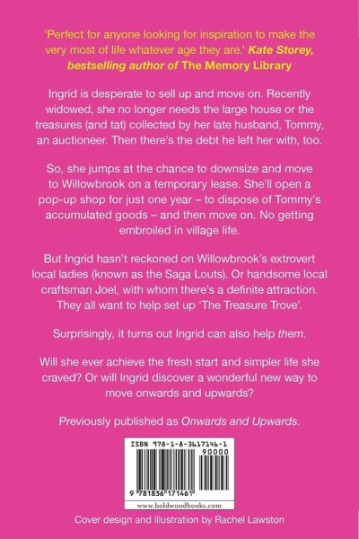 The BRAND NEW feel-good read from TOP TEN bestselling author Celia Anderson Ingrid is desperate to sell up and move on. Recently widowed, she no longer needs the large house or the treasures (and tat) collected by her late husband, Tommy, an auctioneer. Then there's the debt he left her with, too. So, she jumps at the chance to downsize and move to Willowbrook on a temporary lease. She'll open a pop-up shop for just one year - to dispose of Tommy's accumulated goods - and then move on. No getting embroiled in village life. But Ingrid hasn't reckoned on Willowbrook's extrovert local ladies (known as the Saga Louts). Or handsome local craftsman Joel, with whom there's a definite attraction. They all want to help set up 'The Treasure Trove'. Surprisingly, it turns out Ingrid can also help them. Will she ever achieve the fresh start and simpler life she craved? Or will Ingrid discover a wonderful new way to move onwards and upwards? Fans of Milly Johnson, Maddy Please or Judy Leigh will love Celia Anderson's uplifting and romantic stories. Previously published as Onwards and Upwards. Praise for Celia Anderson: 'Perfect for anyone looking for inspiration to make the very most of life whatever age they are.' Kate Storey 'Celia Anderson's characters leap from the page in her beautifully observed stories.' Sue Moorcroft 'Warm, romantic and different, in the very best way' Katie Fforde 'Celia tells a story with warmth and heart - you'll be rooting for her wonderfully vivid characters, and want them to be your friends too!' Fiona Gibson 'Funny, sad, relatable and superbly crafted, this is a real hug in a book .' Judy Leigh 'Celia's stories are always a delightful read.' Bella Osborne 'I absolutely adored it!' Ruth Hogan 'Certain to make you laugh and cry' Jenni Keer 'Wonderful characters make this a great read' Good Housekeeping 'Unforgettable' Woman's Weekly 'A gorgeous, uplifting, poignant tale of love, friendship and second chances . . . A treat of a novel' Annie Lyons