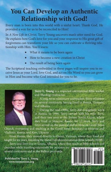 You Can Develop an Authentic Relationship with God! Every man is born into this world with a sinful heart. Thank God, He provided a way for us to be reconciled to Him! In A New Life in Christ, Terry Young uncovers man's utter need for God. He explains how God's love for you and your response to His great gift of forgiveness can transform your life so you can cultivate a thriving relationship with Him. You'll learn: · What it means to be born again · How to become a new creation in Christ · The result of being born again The scriptural teaching embedded in these pages will inspire you to receive Jesus as your Lord, love God, and value His Word so you can grow in Him and fulfill your destiny!