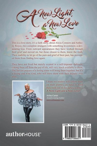 A New Light a New Love This is a love story; it's a faith story, about Alicia and Anthony, two complete strangers with something in common; a devastating loss. From outward appearances they have worked through their grief and moved on, but those closest to them, know the truth. Their inability to let go of the pain and grief of their past, has prevented them from finding love again. They have not lived but merely existed in a self-imposed darkness, cutting them off from the joy of life, still very much available to them. The fervent prayers of a loving sister will bring them together, but it's a loving and wise God who will bless them with their happily ever after. I hope my readers will follow them on their journey as hand in hand they walk out of the darkness into a New Light and a New Love!