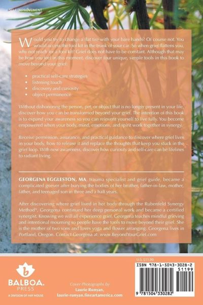 Would you try to change a flat tire with your bare hands? Of course not. You would access the tool kit in the trunk of your car. So when grief flattens you, why not reach for a tool kit? Grief does not have to be constant. Although that may be how you feel in this moment, discover four unique, simple tools in this book to move beyond your grief: ¿ practical self-care strategies ¿ listening touch ¿ discovery and curiosity ¿ object permanence Without dishonoring the person, pet, or object that is no longer present in your life, discover how you can be transformed beyond your grief. The intention of this book is to expand your awareness so you can reinvent yourself to live fully. You become empowered when your body, mind, emotions, and spirit work together in synergy. Receive permission, assurance, and practical guidance to discover where grief lives in your body, how to release it and replace the thoughts that keep you stuck in the grief loop. With new awareness, discover how curiosity and self-care can be lifelines to radiant living.