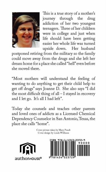 This is a true story of a mother's journey through the drug addiction of her two youngest teenagers.Three of her children were in college and just when life should have been getting easier her whole life was turned upside down. Her husband postponed retiring from the military so the family could move away from the drugs and she left her dream home for a place she called "hell" even before she moved there. Read about how the terror of teenage drug addiction transformed this mom into a counselor for drug addicts and their families.