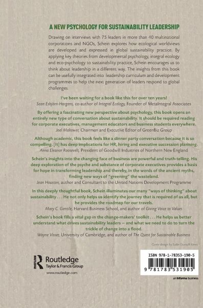 Drawing on interviews with 75 leaders from multinational corporations and NGOs, Schein explores the psychological motivations of sustainability leaders. Applying theories from developmental psychology, Schein demonstrates how the complexity of sustainability is driving new approaches to leadership.
