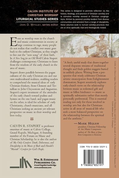 Even as worship wars in the church and music controversies in society at large continue to rage, many people do not realize that conflict over music goes back to the earliest Christians as they sought to live out the "new song" of their faith. In A New Song for an Old World Calvin Stapert challenges contemporary Christians to learn from the wisdom of the early church in the area of music. Stapert draws parallels between the pagan cultures of the early Christian era and our own multicultural realities, enabling readers to comprehend the musical ideas of early Christian thinkers, from Clement and Tertullian to John Chrysostom and Augustine. Stapert's expert treatment of the attitudes of the early church toward psalms and hymns on the one hand, and pagan music on the other, is ideal for scholars of early Christianity, church musicians, and all Christians seeking an ancient yet relevant perspective on music in their worship and lives today.
