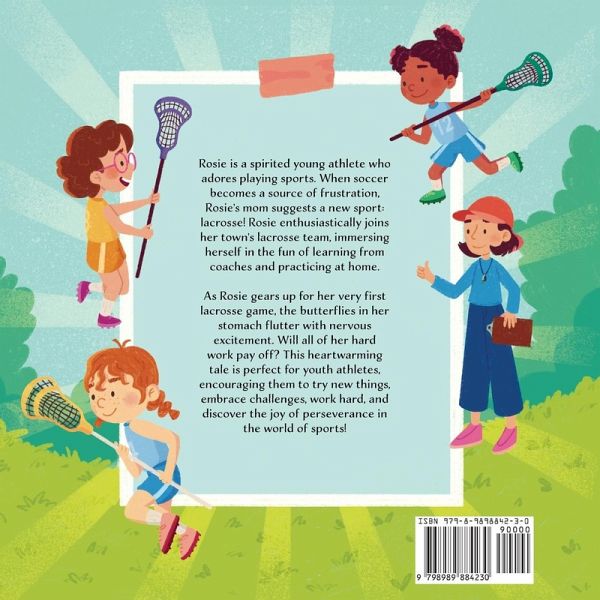 Rosie is a spirited young athlete who adores playing sports. When soccer becomes a source of frustration, Rosie's mom suggests a new sport: lacrosse! Rosie enthusiastically joins her town's lacrosse team, immersing herself in the fun of learning from coaches and practicing at home. As Rosie gears up for her very first lacrosse game, the butterflies in her stomach flutter with nervous excitement. Will all of her hard work pay off? This heartwarming tale is perfect for youth athletes, encouraging them to try new things, embrace challenges, work hard, and discover the joy of perseverance in the world of sports!