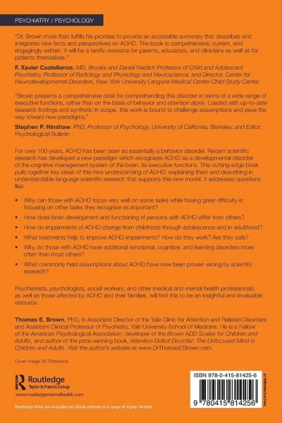 "Dr. Brown provides an accessible summary that describes and integrates new facts and perspectives on ADHD. The book is comprehensive, current, and engagingly written. It will be a terrific resource for parents, educators, and clinicians as well as for patients themselves." - F. Xavier Castellanos, MD, Professor of Child and Adolescent Psychiatry, Professor of Radiology and Physiology & Neuroscience, NYU Langone Medical Center Child Study Center