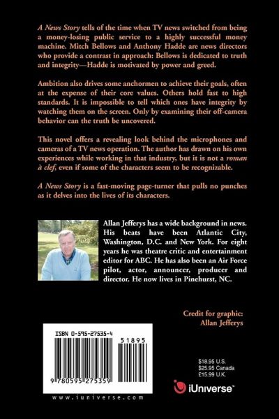 A News Story is set in that time period when TV news veered away from being a money-losing public service medium and turned into a highly successful cash cow. The author has drawn on his own experiences while working in that industry, but it is not a roman à clef, even if some of the characters seem to be recognizable. Two news directors provide a contrast in approach: One is dedicated to truth and integrity-- the other is motivated by power and greed. Ambition also goads several of the reporters and anchors. Some will do anything to achieve their goals, while others hold fast to higher standards. It is impossible to tell which is which by watching them on the screen. We have to know them off-camera-- taking our eye even into their bedrooms--to know the truth. This novel offers a revealing look behind the microphones and cameras of a TV news operation. A News Story is a fast-moving page turner that pulls no punches as it delves into the lives of its characters.