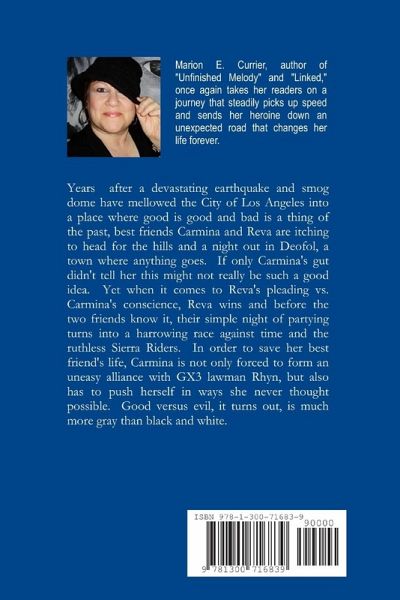 Years after a devastating earthquake and smog dome have mellowed the City of Los Angeles into a place where good is good and bad is a thing of the past, best friends Carmina and Reva are itching to head for the hills and a night out in Deofol, a town where anything goes. If only Carmina's gut didn't tell her this might not really be such a good idea. Yet when it comes to Reva's pleading vs. Carmina's conscience, Reva wins and before the two friends know it, their simple night of partying turns into a harrowing race against time and the ruthless Sierra Riders. In order to save her best friend's life, Carmina is not only forced to form an uneasy alliance with GX3 lawman Rhyn, but also has to push herself in ways she never thought possible. Good versus evil, it turns out, is much more gray than black and white.