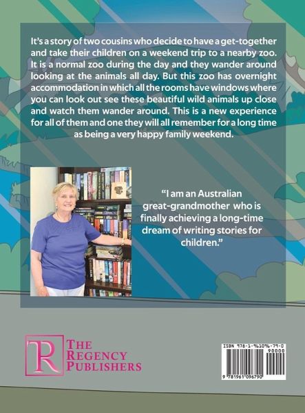 It's a story of two cousins who decide to have a get-together and take their children on a weekend trip to a nearby zoo. It is a normal zoo during the day and they wander around looking at the animals all day. But this zoo has overnight accommodation in which all the rooms have windows where you can look out see these beautiful wild animals up close and watch them wander around. This is a new experience for all of them and one they will all remember for a long time as being a very happy family weekend.