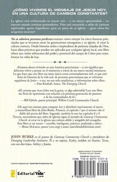 La iglesia est¿¿ enfrentando su mayor crisis --y su mayor oportunidad-- en este mundo post-moderno y post-cristiano. Dios est¿¿ invitando a ¿¿personas imperfectas¿¿ de esp¿¿ritu curioso a aliarse a su iglesia... pero, ¿¿c¿¿mo las estamos recibiendo? Este libro lo ayudar¿¿ a destruir las cinco grandes barreras que existen entre las generaciones emergentes y su iglesia, creando la culturaadecuada. Contiene desde historias reales de personas que estuvieron lejos deDios, hasta ideas pr¿¿cticas que aplican a cualquier iglesia.