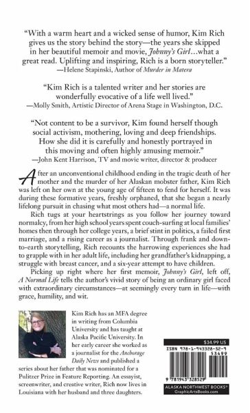 After an unconventional childhood that ended in the tragic death of her mother and the murder of her Alaskan mobster father, Kim Rich was left on her own at the young age of fifteen to fend for herself. Ever since then, she began a nearly lifelong pursuit in chasing what most others had-a normal life. Rich tugs at your heartstrings as you follow her journey toward normalcy, from her teen years, freshly orphaned, through her high school years spent couch-surfing at local families' homes, then through her college years, a failed first marriage, and a rising career as a journalist. Through frank and down-to-earth storytelling, Rich also tells of her grandfather's kidnapping, a frightening health crisis, and a six-year attempt to have children. Picking up right where her first memoir, Johnny's Girl, left off, A Normal Life recounts the author's vivid story of being an ordinary girl faced with extraordinary circumstances-at seemingly every turn in life-with grace, humility, and wit.