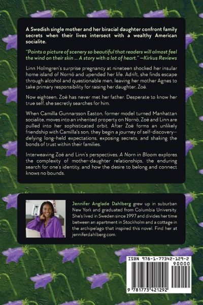 Jennifer Anglade Dahlberg grew up in Rockland County, a suburb about 40 miles north of New York City, and graduated from Columbia University with a Bachelor's Degree in Political Science. Prior to moving "way up north" in 1997, she worked as an executive search consultant for Korn/Ferry International. Life as an expat motivated Dahlberg to pursue her love of writing; her first novel, Uptown and Down, was published by Penguin/NAL in 2005. She spent the next decade researching and writing her second book, Lagging Indicators, which was released independently in 2018. Her third novel and Swedish debut, Sommaren på Nornö, was published by Norstedts Förlag on June 3rd, 2021, and published in English in 2023 as A Norn in Bloom. Dahlberg splits her time between an apartment in Stockholm (where she lives with her husband, daughter, and son) and a cottage in the archipelago that inspired her latest novel.