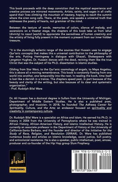 This book is a journey into the metaphysics of the creative process through the teachings of the Sufi sage Ibn al-¿Arabi and other mystics. This project unfolds through the life experiences and expertise of the author and two central visions of the creative process: to make connections where none seem possible or exist. This is the first definition while the second is to translate the ineffable into the tangible. This book also proceeds with the deep conviction that the mystical experience is identical to the creative process. It is divided into two sections, each exactly five chapters. The first part focuses on metaphysical foundations that apply to all crafts. Chapter one, "Following the Traces: On Storytelling", discusses the importance of narrative weaving as a sacred craft for humanity, with immense consequences on the wellbeing of the individual and society. Chapter two, "The Hidden Treasure: On the Creative Process", takes a journey through an athar (narration) central in Sufism where God describes the process of creation as a hidden treasure unfolding, from initial love to expansive knowledge. The creative process appears a five-stage journey that parallels the phases of divine creation and also mirrors an outline of the five levels of being. Chapter three, "Al-Haqiqa al-Muhammadiyya: On Artist as Art", posits the primordial light of the prophet Muhammad as the ethereal matter of creative inspiration, the creative process itself, artist and art, all at once. It also discusses the sage-artist as an instance and mirror of al-insan al-kamil al-tamm (the perfect and complete human). Chapter four, "The In-Between: On Imagination and Paradox", ventures into the most significant contributions of Ibn al-¿Arabi, one that is also central to the creative process, on the contours of human and divine imagination, as well as the intimate paradox and perplexity that is inherent in creativity and art. "Shari¿a of the Craft: On the Path to Haqiqa", the last chapter in part one, tries to outline a way for mastering crafts through the lens of Sufism, specifically the three stages of shari¿a (law/rules), tariqa (path), and haqiqa (reality). Part two focuses on different genres of art, beginning with chapter five, "Memories in Ink: On the Written Arts" that looks at translation as an art form. Meanwhile, chapter six, "The Dye of God: On the Visual Arts", looks at the crafts of painting, sculpture, and architecture as windows into the act of reading not only the body, grammar or prose of art, but more importantly its spirit and poetry. Chapter seven, "The Sawt Sarmad: On the Auditory Arts", envisions a musical instrument as a wooden sage that tries to teach the musician the importance of annihilation and being an empty channel. Chapter eight, "The Reel of Reality: On the Moving Arts", looks at theater and film as a sacred synthesis of the written, visual, and auditory arts. Chapter nine, "Märifa and ¿Urf: On Society and Mythology", expands the conversation from the creativity of the individual to that of society and community. The final concluding chapter offers some final remarks on what this book tries to accomplish and setting the frontier for further conversations.