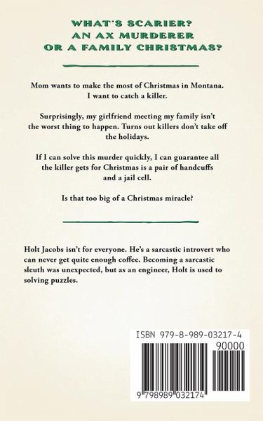 What's scarier? An ax murderer or a family Christmas? Mom wants to make the most of Christmas in Montana. I want to catch a killer. Surprisingly, my girlfriend meeting my family isn't the worst thing to happen. Turns out killers don't take off the holidays. If I can solve this murder quickly, I can guarantee all the killer gets for Christmas is a pair of handcuffs and a jail cell. Is that too big of a Christmas miracle? Holt Jacobs isn't for everyone. He's a sarcastic introvert who can never get quite enough coffee. Becoming a sarcastic sleuth was unexpected, but as an engineer, Holt is used to solving puzzles.