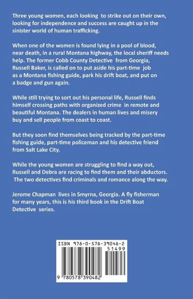 Three young women, each looking to strike out on their own, looking for independence and success are caught up in the sinister world of human trafficking. When one of the women is found lying in a pool of blood, near death. in a rural Montana highway, the local sheriff needs help. The former Cobb County Detective from Georgia, Russell Baker, is called on to put aside his part-time job as a Montana fishing guide, park his drift boat, and put on a badge and gun again. While still trying to sort out his personal life, Russell finds himself crossing paths with organized crime in remote and beautiful Montana. The dealers in human lives and misery buy and sell people from coast to coast. But they soon find themselves being tracked by the part-time fishing guide, part-time policeman and his detective friend from Salt Lake City. While the young women are struggling for a way out, Russell and Debra are racing to find them and their abductors. The two detectives find criminal and romance along the way.