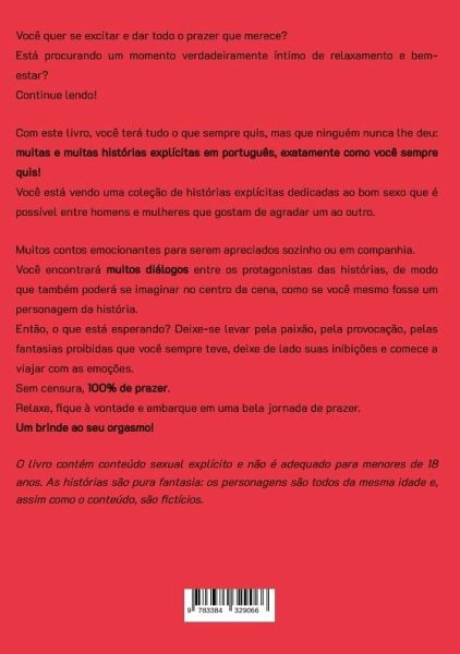 Você quer se excitar e dar todo o prazer que merece?Está procurando um momento verdadeiramente íntimo de relaxamento e bem-estar?Então continue lendo!Com este livro, você terá tudo o que sempre quis e que ninguém nunca lhe deu: muitas e muitas histórias explícitas em português, exatamente como você sempre quis!Você tem diante de si uma coleção de histórias explícitas dedicadas ao bom sexo que é possível entre homens e mulheres que gostam de agradar um ao outro. Muitos contos excitantes para experimentar sozinho ou acompanhado.Você encontrará muitos diálogos entre os protagonistas das histórias, de modo que também poderá se imaginar no centro da cena, como se você mesmo fosse um personagem da história.Então, o que está esperando? Deixe-se levar pela paixão, pela provocação, pelas fantasias proibidas que você sempre teve, deixe de lado suas inibições e comece a viajar com as emoções.Sem censura, 100% de prazer.Relaxe, fique à vontade e embarque em uma bela jornada de prazer.Um brinde ao seu orgasmo!