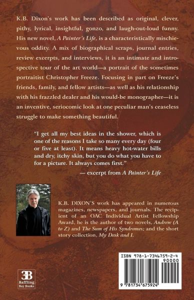 K. B. Dixon's work has been described as original, clever, pithy, lyrical, insightful, gonzo, and laugh-out-loud funny. His new novel, A Painter's Life, is a characteristically mischievous oddity. A mix of biographical scraps, journal entries, review excerpts, and interviews, it is an intimate and introspective tour of the art world-a portrait of the sometimes portraitist Christopher Freeze. Focusing in part on Freeze's friends, family, and fellow artists-as well as his relationship with his frazzled dealer and his would-be monographer-it is an inventive, seriocomic look at one peculiar man's ceaseless struggle to make something beautiful.