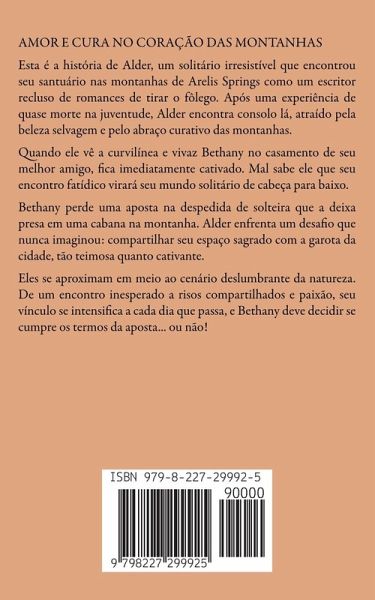 AMOR E CURA NO CORAÇÃO DAS MONTANHAS Esta é a história de Alder, um solitário irresistível que encontrou seu santuário nas montanhas de Arelis Springs como um escritor recluso de romances de tirar o fôlego. Após uma experiência de quase morte na juventude, Alder encontra consolo lá, atraído pela beleza selvagem e pelo abraço curativo das montanhas. Quando ele vê a curvilínea e vivaz Bethany no casamento de seu melhor amigo, fica imediatamente cativado. Mal sabe ele que seu encontro fatídico virará seu mundo solitário de cabeça para baixo. Bethany perde uma aposta na despedida de solteira que a deixa presa em uma cabana na montanha. Alder enfrenta um desafio que nunca imaginou: compartilhar seu espaço sagrado com a garota da cidade, tão teimosa quanto cativante. Eles se aproximam em meio ao cenário deslumbrante da natureza. De um encontro inesperado a risos compartilhados e paixão, seu vínculo se intensifica a cada dia que passa, e Bethany deve decidir se cumpre os termos da aposta... ou não!