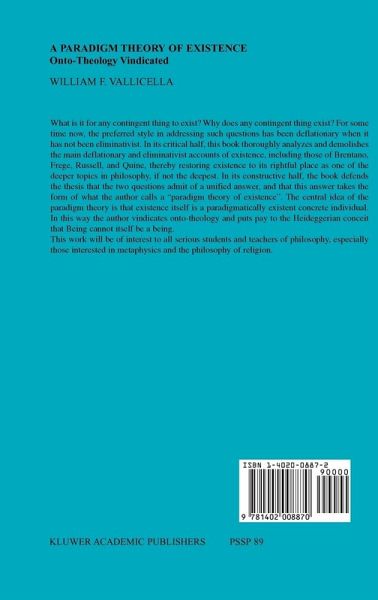 From the reviews: "This book offers an extended argument that the existence of contingent things is grounded in and hence accounted for by a paradigm existent, which is none other than existence itself ... . a very useful book indeed. The ground covered is immense. The author's knowledge of the past century and a half of philosophizing about the problem of existence is encyclopedic, and his arguments are incisive, to the point, and almost always persuasive. ... this volume belongs on the reading list of anyone ... ." (Hugh J. McCann, The Review of Metaphysics, Vol. LVIII (231), 2005) "While reading Vallicella's excellent book, I was constantly reminded of why I went to philosophy. It addresses an important perennial issue, it is deep, well-informed and broad, and it is full of precise, careful arguments. This work is one of the best books I have ever read on topics in analytic ontology. ... Vallicella's book is incredibly rich, learned and rewarding. ... And reading this book would be a good antidote to anyone ... ." (J. P. Moreland, Journal of the Evangelical Philosophical Society, 2005)