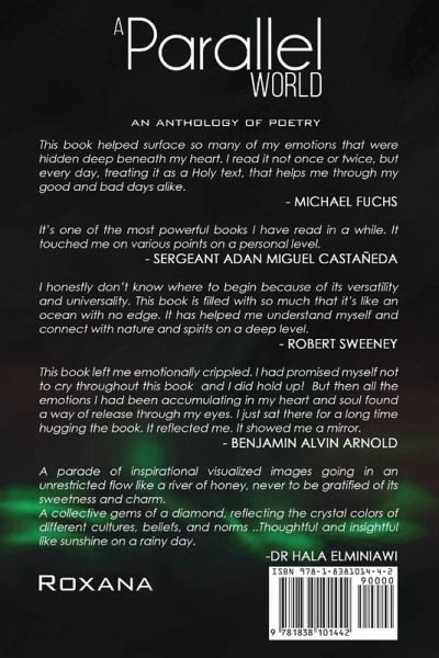 A PARALLEL WORLD is a profound and evocative collection of poetry born from the poet's labor of love - a tapestry woven with threads of life experiences, emotions, and the wisdom gained along the way. Each poem is a deeply personal reflection, thoughtfully crafted to invite readers into a space of contemplation, healing, and connection. Exploring timeless literary forms such as Ode, Allegory, Epic, and Soliloquy, this collection serves as both a spiritual and philosophical journey. Through the lens of human experience, the poet delves into themes of identity, purpose, pain, and transcendence - drawing meaning from both the ordinary and the extraordinary moments of life. Adding a rich visual layer to the words are captivating illustrations contributed by talented artists from around the globe, offering a universal and artistic perspective that complements the emotional depth of the poetry. This book is more than a collection of poems - it's a mirror for the soul, a gentle whisper from the inner world, and a celebration of the resilience and beauty of the human spirit.