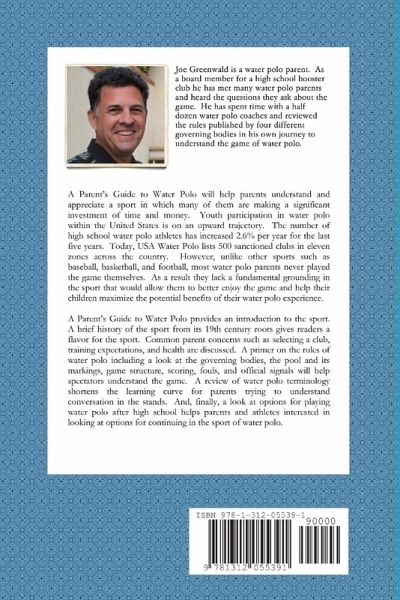 A Parent's Guide to Water Polo helps parents understand and appreciate a sport in which many are making a significant investment. Youth participation in water polo is on an upward trajectory. Participation in high school water polo has increased 2.6%% per year for five years. But, unlike other sports, most water polo parents never played the game themselves. They lack a fundamental grounding in the sport that would allow them to better enjoy the game and help their children maximize the potential benefits of the water polo experience. This book provides an introduction to the sport. A brief history of the sport gives a flavor for the game. Common parent concerns such as selecting a club, training, and health are discussed. A primer on the rules helps spectators understand the game. A review of terminology helps parents trying to understand conversations in the stands. Finally, the book looks at options for playing water polo after high school.