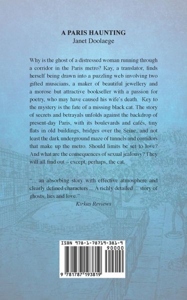 Why is the ghost of a distressed woman running through a corridor in the Paris metro? Kay, a translator, finds herself being drawn into a puzzling web involving two gifted musicians, a maker of beautiful jewellery and a morose but attractive bookseller with a passion for poetry, who may have caused his wife's death. Key to the mystery is the fate of a missing black cat. The story of secrets and betrayals unfolds against the backdrop of present-day Paris, with its boulevards and cafes, tiny flats in old buildings, bridges over the Seine, and not least hte dark underground maze of tunnels and corridors that make up the metro. Should limits be set to love? And what are the consequences of sexual jealousy? They will all find out - except, perhaps, the cat.
