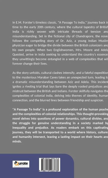 Introducing the timeless literary classic, ""A Passage To India,"" penned by the renowned author E. M. Forster. Embark on a captivating journey through the mystical landscapes of India, where cultures collide and friendships are tested amidst the backdrop of colonial British India. Set in the early 20th century, the novel follows the enthralling tale of Dr. Aziz, a young Indian physician, and his encounter with two Englishwomen, Mrs. Moore and her young friend Adela Quested. As they venture into the heart of India's enigmatic terrain, they confront the complexities of cultural misunderstandings and the deep-rooted prejudices that divide East and West. E. M. Forster's brilliant prose weaves a tapestry of emotions, exploring the themes of friendship, identity, and the clash of ideologies in a colonial setting. As the characters navigate through societal norms and personal beliefs, ""A Passage To India"" delves into the intricacies of human relationships and the transformative power of experiences. This literary masterpiece has stood the test of time, resonating with readers for generations and leaving an indelible mark on the world of literature. Immerse yourself in the rich tapestry of India's vibrant landscapes and human connections as you turn each page of this thought-provoking and soul-stirring novel. Whether you're a seasoned reader or a newcomer to classic literature, ""A Passage To India"" promises an unforgettable reading experience that will leave you pondering its profound themes long after you've reached the final chapter. Add this timeless gem to your collection and embark on an intellectual journey like no other. Order your copy of ""A Passage To India"" by E. M. Forster today and unlock the secrets of a world that still resonates with relevance in our modern times.