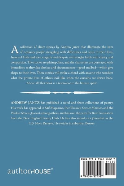 A collection of short stories by Andrew Jantz that illuminate the lives of ordinary people struggling with difficulties and crisis in their lives. Issues of faith and love, tragedy and despair are brought forth with clarity and compassion. The stories are plainspoken, and the characters are portrayed with immediacy as they face choices and circumstances-good and bad-which give shape to their lives. These stories will strike a chord with anyone who wonders what the private lives of others look like when the curtains are drawn back. Above all, this book is a testament to the human spirit.