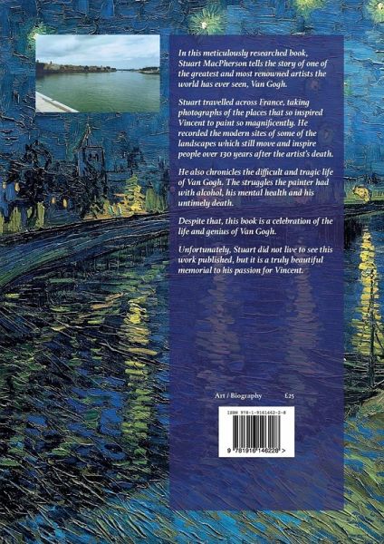 In this meticulously researched book, Stuart MacPherson tells the story of one of the greatest and most renowned artists the world has ever seen, Van Gogh. Stuart travelled across France, taking photographs of the places that so inspired Vincent to paint so magnificently. He recorded the modern sites of some of the landscapes which still move and inspire people over 130 years after the artist's death. He also chronicles the difficult and tragic life of Van Gogh. The struggles the painter had with alcohol, his mental health and his untimely death. Despite that, this book is a celebration of the life and genius of Van Gogh. Unfortunately, Stuart did not live to see this work published, but it is a truly beautiful memorial to his passion for Vincent.